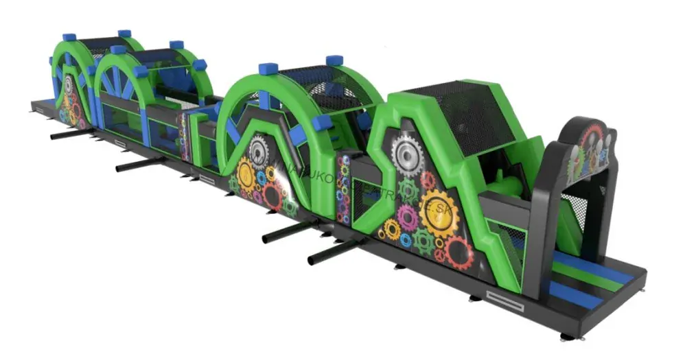 Nafukovacia atrakcia vyrobená z kvalitného, DIN certifikovaného materiálu 0,55mm PVC DTex PLATO, s vysokou nátrhovou pevnosťou 2100N/5cm. K atrakciám sú dodávané iba Gibbons fukáre z GB.